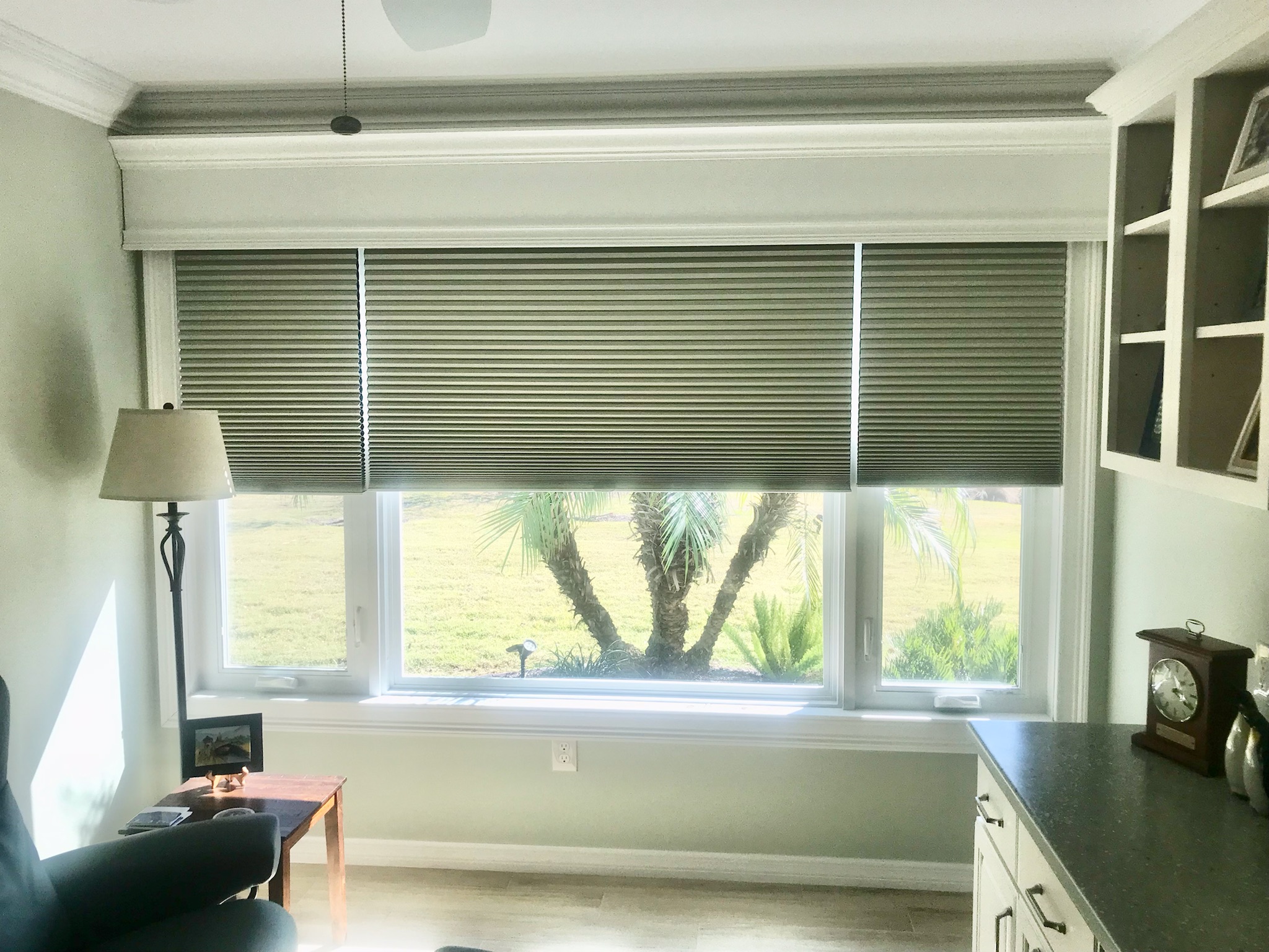 Cellular shade’s honeycomb design is intended to provide an added layer of insulation at the window, which helps to block out heat in the summer and keep heat inside your home in colder temperatures (although those aren’t plentiful in sunny Florida). These sleek, yet functional shades are even available in top down or bottom up styles.