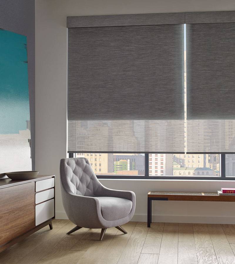 Automatic roller shades for dining room for privacy and sun protection